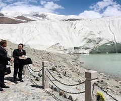 新疆维吾尔自治区塔什库尔干塔吉克自治县检察院副检察长鲁提甫拉·木太力甫和干警郑玉花在慕士塔格冰川走访。( 摄影: 方圆记者 张哲) 平均海拔4000米的帕米尔高原上,坐落着新疆维吾尔自治区海拔最高、条件最艰苦的检察院——塔什库尔干...