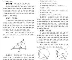 【摘要】求解三角形中的角度问题,常用的思想方法有方程思想、转化思想和分类讨论思想.探究学习时,需解读思想内涵,结合几何问题探索构建策略,并强化练习.本文三种思想方法开展应用探究,与读者交流. 【关键词】初中数学;三角形;解题方法 思想方法在...