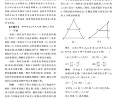 【摘要】相似三角形是初中数学的重要内容,也是教学中的难点.由于图形的多变复杂,增加了判断相似三角形的难度,导致学生常常难以找到相似三角形解题.本文主要介绍三种判断相似三角形的方法:A字模型法、反射模型法和三点定形法.这三种方法对应不同的图形...