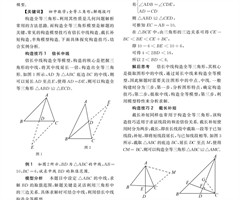 【摘要】全等三角形对于学生而言是老生常谈的一个知识点,也是要求学生们在学习和解题过程中必须掌握的一类问题.熟悉全等三角形有关的模型,是解答相关问题的前提和基础.本文列举三个不同例题,分别介绍如何识别、应用和解答相关模型,帮助提高学生们的解题...