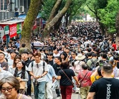 2025年10月4日,湖南长沙,岳麓山麓山南路人流如织。 2025年年底,世界银行、经合组织、亚洲开发银行分别将2025年中国经济增速预期上调0.4、0.1和0.1个百分点。国际货币基金组织最新报告则将中国2025年经济增速预测值上调至5%...