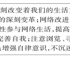自主探究 情境一:网络说道:我的名字叫做网络,我可是很多人的亲密伴侣,社会上几乎每个人都离不开我的陪伴,我为人们的生活和社会的进步作出了不可小觑的贡献…… 探究:网络是如何为人们生活和社会进步作出贡献的? 情境二:小洲经常出现这样的状况:本...