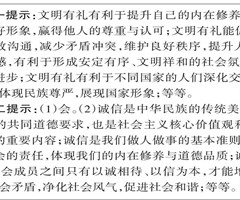 [题型概述] 中国古诗词是中华民族文学宝库中的宝藏,是前人留下的珍贵文化遗产。近年来,在道德与法治中考试题中,以古诗词为材料的试题占据了相当的部分。诗词类选择题题肢一般设置为诗词,所选素材包含了一个或多个道理。在命题形式上多用“体现”“说明...