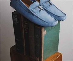 浅蓝色翻绒革豆豆鞋Tod's 4900元 本款豆豆鞋以丝绒般柔软的翻绒革制成,配以精致的横条装饰、品牌T形金属扣,外露手工缝线设计,后跟点缀橡胶豆豆,鞋底平稳舒适。...