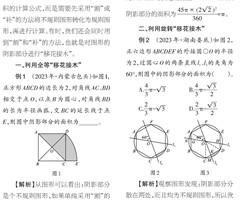 求阴影部分面积是与圆有关的常见中考题型,主要考查扇形的面积计算公式。这类试题常常不是直接考查扇形面积的计算公式,而是需要先采用“割”或“补”的方法将不规则图形转化为规则图形,再进行计算。有时,我们还会同时用到“割”和“补”的方法,也就是对图...