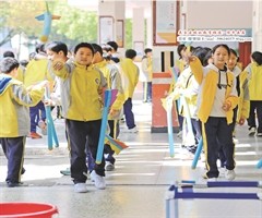 的课间总透着别样的热闹:4000余平方米的校园里,1200余名学生分散在各个角落:地面格子区里单脚跳着背古诗,教室墙面下比拼摸高,过道里跳绳声伴着歌谣…人均不足4平方米的空间,没困住活力,反倒因巧思设计成了“处处能运动、时时可成长”的乐园。...