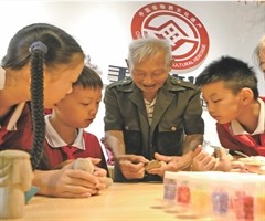 在夕阳映照下的“采芹传习所”,四年级学生顾晨可正踮脚盯着玻璃柜里的老木偶。红脸关公的丹凤眼像会说话,和他手里刚糊好的“勤学好问”木偶对望着。非遗传承人郭金海捏着细毛笔走过来,蘸了金漆给新木偶点睛……近日,在江西省赣州市信丰县第一小学里,一场...