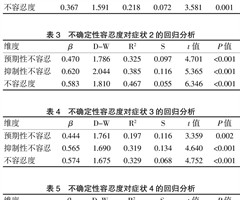 [摘要] 目的 探讨不确定性容忍度与强迫症及其症状维度的关系和预测性。 方法 以问卷形式调查2018年5月至2020年12月在浙江省立同德医院确诊的强迫症患者48例,以不确定性容忍度(IU)、多维强迫症(DOCS)和耶鲁-布朗强迫症自测量表...