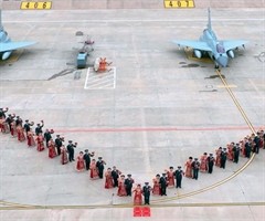 ① 10月2日,西部战区空军某旅举行“情定洮水之滨 爱在精鹰劲旅”集体婚礼。图为新人的航拍合影。摄影/赵耀 红妆与戎装相映,浪漫与忠诚相融。 国庆节前后,各部队为官兵举行了一场场集体婚礼——是终成眷属的甜蜜见证,亦是与国同庆的深情告白。 ...