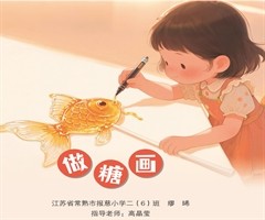 今天,我体验了做金鱼糖画。 首先,我小心翼翼地把糖放进糖画笔里,然后在一旁等待糖熔化。不一会儿,糖浆就从笔尖慢慢地流出来了。我迫不及待地拿起笔,先画出金鱼小小的头;然后在头的旁边画了几条弧线,这便是金鱼胖乎乎的身子;接着在身子后面画了个像花...