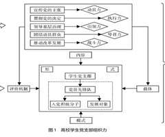 摘 要:文章将高校学生党支部的组织力分为内向力和外向力两种表现形式,通过明确组织力的外向力方向,优化组织力内向力要素结构,深入研究组织力内外向度的逻辑性和系统性,形成组织力提升机制,从而为科学构建高校学生党支部组织力寻找对策。 关键词:学...