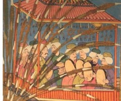 (接上期) 第十二幅图描绘的是两位乐人正在吹排箫,一位演奏乌德,四位演奏铃鼓。演奏者全部是男性(图18)。 图18排箫与铃鼓第十三幅图描绘的是四位女性在跳舞,手拿它石表演。乐队阵容庞大,其中有六位演奏铃鼓,两位吹奏苏尔乃依,一位演奏排箫(图...
