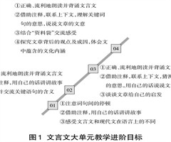 【摘 要】从大单元视域来审视小学阶段的文言文教学,其以核心知识为载体,实现目标、任 务、情境、内容、学习方式、评价等多种元素的整合,指向学生对学科思想和方法的理解,指向迁移应用所学知识和方法解决新问题的能力。构建大单元教学策略如下:依据年段...