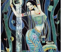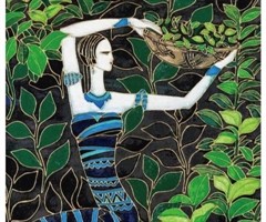 《采茶姑娘》沥粉贴金装饰画 作品尺寸:60cm×80cm...