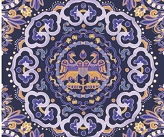 图1蜀锦传统纹样创新设计图2蜀锦创新纹样配色本设计提取了蜀锦中代表性的对鸟纹,八达晕纹,莲花纹等传统纹样,表达生活美满,吉祥如意的美好愿景(如图1所示)。提取四川博物馆的象鼻耳卷体夔纹铜罍中的兽首纹进行主体纹样创新性设计。在色彩上打破传统配...