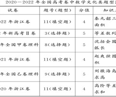 2022年自主命题的浙江卷在第11题中要求以秦九韶三斜求积公式求三角形面积,浙江卷2020-2022年高考中每年都在第11题出现数学文化类题型,数学文化的渗透和领会,是数学教学中不可或缺的一部分,也是培养学生数学学科核心素养文化价值的有力体...