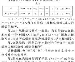 摘要: 奇偶性是函数的重要性质.“函数的奇偶性”的教学按照研究函数性质的一般方法,通过问题串的形式,再适当融入数学文化来组织,以帮助学生更好地完成对“奇偶性”概念的建构和理解. 关键词:函数的奇偶性;问题串;数学文化 1 教学内容分析 “函...