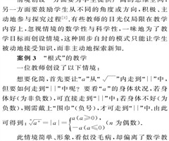 摘要:随着新课改的推进,情境创设已然成为教育者的看家本领.实践证明,有些教师在情境创设上仍存在一些观念或行为上的不足.本文中结合在情境创设中容易出现的“流于形式,缺乏探究性;喧宾夺主,毫无导向性;固步自封,丧失数学味”三个方面的问题,用具体...