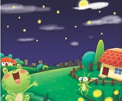 看图魔法书 看图提示 你觉得夜晚的天空像什么?夜晚来临时,人xi shuai们在做什么?小青蛙和小蟋蟀又在干什么呢?口头示范 tan夜晚十分宁静。天空像一条宽大的毯子,满天的zhui星星就像是点缀在毯子上的一颗颗晶莹的宝石。 jiao月光皎...