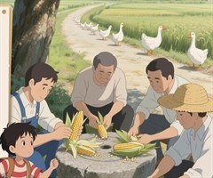 放假了,小明来到乡下的奶奶家度假。一天傍晚,他和四位老大爷在村边场院剥玉米皮,小明问他们:“老大爷们,你们一直生活在乡下,说说你们最喜欢的东西是什么?” 王大爷说:“我爱四个王字转一转。 张大爷说: “我爱四个日字肩并肩。 李大爷说: “我...