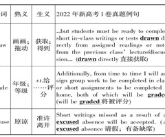 近年来,在高考真题中出现的熟词生义十分常见。熟悉的单词在不同的语境中却有不一样的意思,使一些考生在理解文章内容时出现偏差。笔者对2022年新高考全国Ⅰ卷中出现的熟词生义作出归纳并得出2023届的备考启示。 一、熟词生义 《普通高中英语课程标...