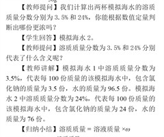 摘 要:教师利用身边常见的物质——海水,创造真实的生活情境,通过“海水初印象—海水再认识—海水再探究—海水共保护”的流程组织学习教学活动,让学生在逐步深入了解海水的过程中,掌握溶质质量分数的计算方式、重要意义以及浓溶液和稀溶液之间的转换方法...