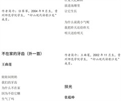 编者按:母爱是人类永恒的情感主题。本期12位小作者用细腻的笔触和丰富的情感,展现了孩子们对母爱的深刻感悟和真挚感恩。从“瓷碗盛着月亮”到“纸飞机承载爱意”,孩子们用独特的意象和视角,将母爱的温暖、包容与无私展现得淋漓尽致。无论是青春期的叛逆...