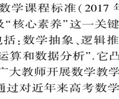 【摘要】在高中数学教学中,核心素养是教学的首要目标和设计依托,贯穿教学的整体过程.教师从单元作业设计的角度出发,依托核心素养创设单元作业内容,能为教学增效,有助于推进单元教学的环节与过程,全面拓展教学的维度.基于此,文章以培养高中生数学核心...