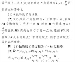 【摘要】圆锥曲线中定点与定值问题是高考常考的题型.对于直线过定点问题,可用参数表示出直线方程,然后结合条件确定定点的位置.对于定值问题,可先考虑特殊情形,把定值求出来,再证明一般的情形.文章结合具体例题,给出圆锥曲线中定点问题和定值问题的解...