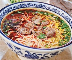 一碗清汤,一担细面,清汤伴着袅袅热气,与细面均匀地融为一体。做面师傅娴熟地放上卤香的牛肉块、撒上绿油油的葱花、香菜做点缀,并让辣油和香醋肆意流淌。原本清亮的汤水表面被渗入诱人的色彩,好似笔墨清爽的山水画中添加了色彩斑斓的点缀。普通瓷碗中,色...