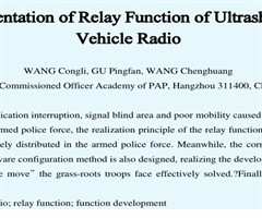 摘要:针对武警部队遂行多样化任务过程中,超短波转信台的缺乏而造成通信中断、信号盲区和机动性差等问题,部队大量配发了超短波GM3688基车台,分析了转信功能实现原理,确定了扩展接口引脚对应关系并对软件配置方法进行了设计,实现了转信功能开发,有...
