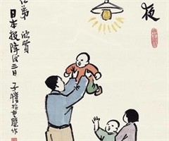 1945年,重庆。一个盛夏的夜晚,暖灯下,一名幼童被激动的父亲高高举起,笑容灿烂,哥哥姐姐站在一旁,同样满脸喜色,一只猫蹲伏于地,似在倾听人间欢腾。 这是著名画家丰子恺在《胜利之夜》中所绘景象。 画幅右侧是“胜利之夜”4个字,左侧写有“日本...