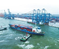 2025年8月6日,记者来到广西钦州港,骤雨之后,货船上的信号旗猎猎作响。 码头上的积水倒映着高大的岸桥,一个个集装箱被这些庞然大物从货船上卸载,又装载进无人驾驶的集装箱卡车上。岸边,一艘艘货船劈开海浪,或满载靠岸,带来进口的山竹、榴莲、龙...