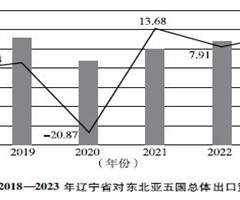 摘 要:文章以2018—2023年双边贸易数据为基础,采用数据分析方法,对辽宁省对东北亚国家的出口增长情况及出口结构进行研究。研究结果显示,辽宁省对东北亚五国出口总体呈先增长、再下降、后上升趋势,2020 年受国际大环境影响大幅下降,202...