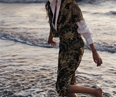 焕然一新 白衬衫通常是海滩外衫的首选,但Quannah ChasingHorse这次却打破常规,将Ralph LaurenCollection衬衫作为内搭,再配上Dior亮片上衣和裙子。环形耳环 Jennifer Fisher成双成对 Ch...