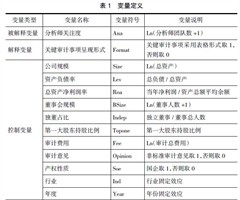 【摘 要】 认知心理学指出,人存在有限的认知负荷,图表能减少工作记忆元素,有效降低认知负荷。以2017—2022年A股上市公司为样本,考察关键审计事项呈现形式对分析师关注度的影响。研究发现,采用表格形式进行信息呈现能够显著提高分析师关注度。...