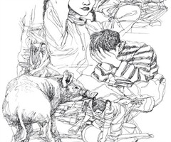 一 鼎好婆在石库门里那个废墟上靠着围墙用乱砖砌了间小屋,在里头养起了猪。不久,我妈也仿照着弄了个小屋,准备养猪。 这是一条胖嘟嘟的小黑猪。小鼻嫩嫩的,小眼睛是双眼皮,眸子清澈,有微翘的睫毛,小蹄子更如名牌皮鞋似的精致得不得了。小猪是我妈从一...