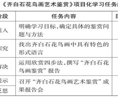 【摘 要】指向核心素养的小学水墨鉴赏教学要摆脱方法单一、方式被动、成果浅表的现实问题,教师可以尝试运用项目化学习方式,整合水墨学习内容,基于学生生活逻辑,创设真实情境,从驱动性问题、学习目标、学习任务、评价指标等方面展开结构化教学设计,并根...