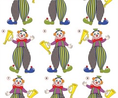 找一找 小朋友,你能从下面找出两个完全一样的小丑吗?机械手大冒险 哎呀呀!工厂里发生了一件超级搞笑的事情 群小机器人在下班派对上手舞足蹈的,结果把自己的机械手给蹦丢了!快来帮帮它们吧!你还可以为它们涂上你喜欢的颜色。答案 导彩莫一莫...
