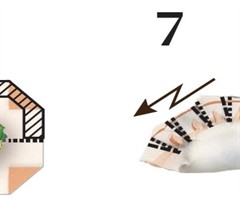 将“饺子馅”放到“饺子皮”中间。 在阴影区域涂上胶水,沿虚线对边折并粘到一起。 沿虚线前后连折,折出“饺子皮”的“褶皱”。 饺子就完成了。...
