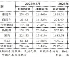 2025年9月11日,中国汽车工业协会发布了2025年8月份及1-8月我国汽车产销数据及经济运行情况。从整体汽车市场来看,8月,我国宏观经济景气水平总体继续保持扩张,当月汽车产销同比均保持 10% 以上增长,其中新能源汽车和汽车出口继续呈现...