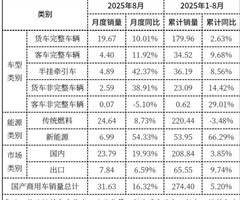 今年以来,尽管商用车的增长速度远落后于乘用车,但“止跌回升”已成为近几个月的主旋律。政策层面的加力扩围,以及新能源商用车和出口的快速提升,都成为推动市场增长的重要因素。 2025年9月11日,中国汽车工业协会发布了2025年8月份及1-8月...