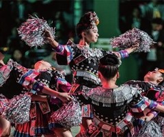 2025年4月13日,大地流彩·2025年全国和美乡村篮球大赛(村BA)启动仪式在贵州省黔东南苗族侗族自治州台江县台盘村举行。图为演员在启动仪式上进行歌舞表演(陶亮/摄) 7月15日19时30分,贵州省黔东南苗族侗族自治州台江县台...