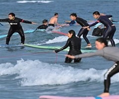 2025年10月2日,游客在海南万宁日月湾冲浪(郭程 / 摄) 到云南香格里拉徒步,去海南万宁冲浪,在贵州黔南进行溶洞探险,或前往新疆阿勒泰滑雪、单车环游青海湖……越来越多年轻人将假期时间投向远离城市喧嚣的自然,户外运动俨然成为体育消费中的...