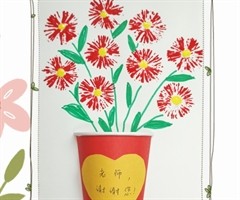 教师节到了,亲手做一张花束贺卡送给老师,很有意义。很简单哦,一起来试试吧!材料:纸杯、卡纸、颜料、棉签、吸管 工具:剪刀、双面胶、彩笔是不是很简单?你也来试试吧!...