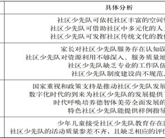 摘要:社区少先队的发展与“双减”政策的教育理念相契合,两者均服务于少年儿童的全面发展。基于SWOT分析法,社区少先队发展的内在优势体现为其可依托的空间、人力和精神等资源;潜在劣势表现为家长对社区少先队服务存在认知误区,服务质量地域性差异较大...
