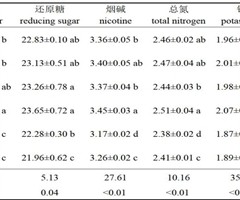 摘要:【目的】探究不同镁水平对烤烟生长发育、养分吸收及烟叶品质的影响。【方法】选取烤烟品种云烟87和K326作为试验对象,采用水培和盆栽试验,对比分析不同镁水平对烤烟农艺性状、抗氧化酶活性、叶绿素含量(SPAD值)以及烤后烟叶化学成分的影响...
