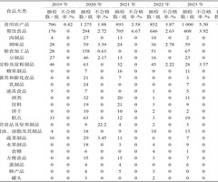 摘要:对2019—2024年河南省某县食品安全监督抽检数据进行汇总与分析,从年度趋势、食品类别及不合格项目等方面评估该县食品安全状况。2019—2024年共抽检食品10223批次,检出不合格样品303批次,总体不合格率为 2.96% 。不合...