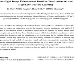 摘 要:针对低照度图像增强中特征学习不足与噪声干扰问题,提出一种融合注意力与高级特征学习的增强网络。首先,设计融合注意力模块,通过多尺度通道感知与空间特征融合抑制噪声并增强关键区域;同时,引入自注意蒸馏机制,利用高层特征引导底层特征优化,实...