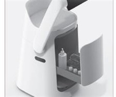 这款座椅型机器人的机械臂末端有一个平板电脑。坐下来后,你可以自由调节平板电脑的使用角度和高度,再用它查询信息或者办公。座椅下方设有抽屉式存储空间,可安全存放、运送物品,其内部配备的紫外线消毒装置能对存储的物品进行消毒,确保卫生。这款便携式风...